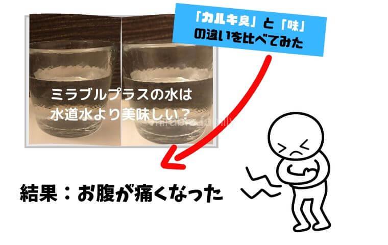水道水とミラブルプラスの水を飲み比べてみたのですが、まったく同じ味がしました。
